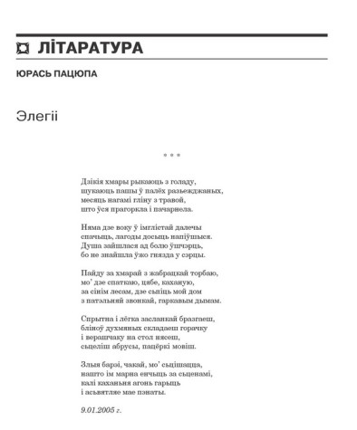 Юры Пацюпа, нар. у 1965 г., паэт, філёляг, скончыў філялягічны факультэт ГрДУ імя Янкі Купалы, займаецца пытаньнямі эстэтыкі, вершазнаўства, лексыкаграфіі, жыве ў Менску.