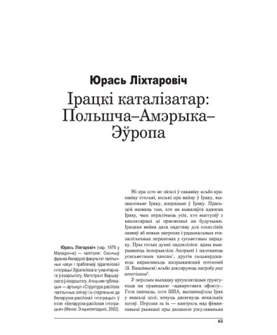 Юры Ліхтаровіч - (нар. у 1978 годзе ў г. Маладзечне) – выпускнік факультэту палітычных і адміністрацыйных навук Эўрапейскага Гуманітарнага ўнівэрсытэту, дактарант Школы прыкладных гуманітарных навук пры Інстытуце сацыялёгіі і філязофіі Польскай акадэміі навук.