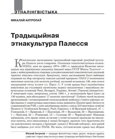 Аўтар(ы): Антропаў МікалайАнтропаў, Мікалай. Традыцыйная этнакультура Палесся // № 3 (102) — 2011. С. 72—88: іл. Бібліягр. у падрадк. заўвагах.