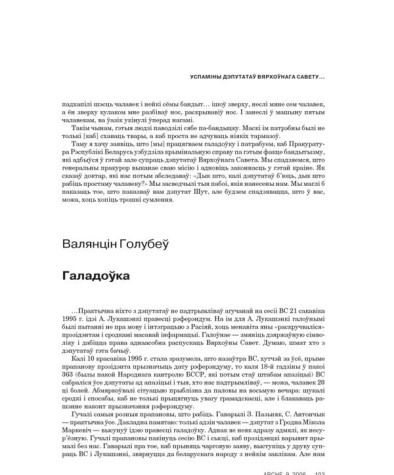 Аўтар(ы): Голубеў ВалянцінГолубеў, Валянцін. Галадоўка // Разгон. Успаміны дэпутатаў Вярхоўнага Савета ХІІ склікання. № 9 (49) — 2006. С. 103—107.