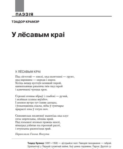 Аўтар(ы): Крамэр ТэадорКрамэр, Тэадор. У лёсавым краі [Вершы: У лёсавым краі; Шчодрае лета; Яшчэ нічога не зрабілі мне...; Будзе марна стукацца малочнік...; Позьняя песня; Рэквіем аднаму фашысту] // № ...
