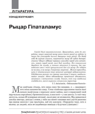 Аўтар(ы): Вэлічкавіч НэнадВэлічкавіч, Нэнад. Рыцар Гіпаталамус // № 4 (103) — 2011. С. 624—628. З баснійскай мовы пераклала Вераніка Бяльковіч паводле: Nenad Veličković, Đavo u Sarajevu, Dani, Sarajevo ...