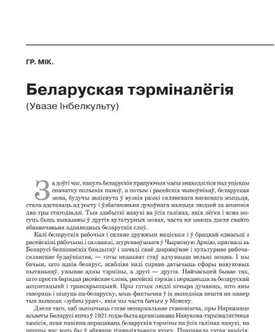 Аўтар(ы): Гр. Мік.Мік., Гр. Беларуская тэрміналёгія (Увазе Інбелкульту) // № 11 (98) — 2010. С. 14—15. Публікуецца паводле: Гр. Мік. Беларуская тэрміналёгія (Увазе Інбелкульту) // Савецкая ...