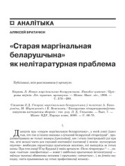Аўтар(ы): Братачкін АляксейБратачкін, Аляксей. «Старая маргінальная беларушчына» як нелітаратурная праблема // № 10 — 2009 (85). С. 340—348. Бібліягр. у падрадк. заўвагах. Публікацыі, якія разглядаюцца ў ...