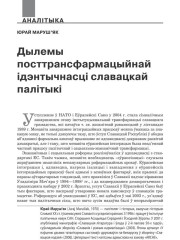 Аўтар(ы): Маруш'як ЮрайМаруш’як, Юрай. Дылемы посттрансфармацыйнай ідэнтычнасці славацкай палітыкі // № 9 (96) — 2010. С. 443—459: іл. Бібліягр. у падрадк. заўвагах. Са славацкай паводле аўтарскага ...