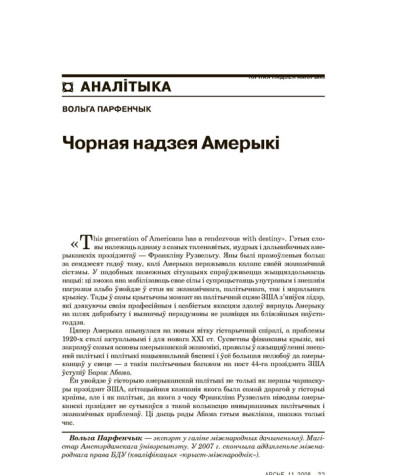 Аўтар(ы): Парфенчык ВольгаПарфенчык, Вольга. Чорная надзея Амерыкі // № 11(74) —2008 . С. 23—27. Бібліягр. у падрадк. заўвагах.