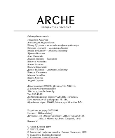 Выдавец(тва): Рэдакцыя часопісу ARCHE «Пачатак».