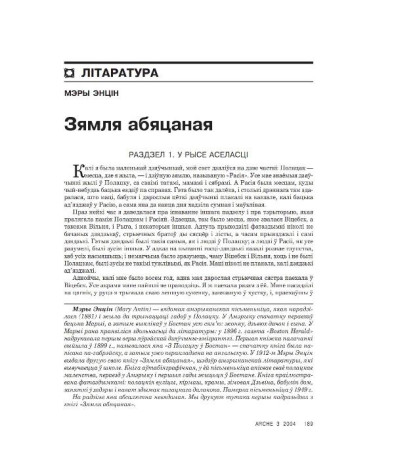 Энцін, Мэры. Зямля абяцаная // № 3 (32) — 2004. С. 189—206. Пер. з ангельскай Паўліна Вішнеўская паводле: Mary Antin. The Promised Land. The Athlantic Monthly Company, 1912.