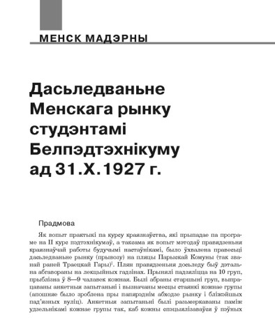 Дасьледаваньне Менскага рынку студэнтамі Белпэдтэхнікуму ад 31.Х.1927 г. // 9 (130) — 2014. С. 421—426: іл., таб. Бібліягр. у падрадк. заўвагах. Друкуецца паводле: Наш край. 1928. № 4 (31). С. 35—38.