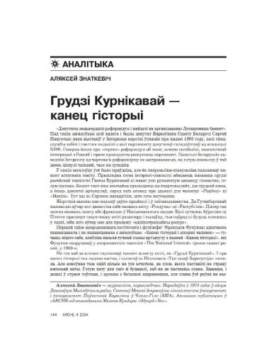 Знаткевіч, Аляксей. Грудзі Курнікавай — канец гісторыі // № 4 (33) — 2004. С. 144—158.