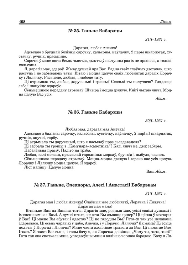 Бабарэка А. № 36. Ганьне Бабарэцы. 30/І–1931 г. // Збор твораў у двух тамах: Том 2. Проза, паэзія, філязофія, публіцыстыка, запісныя кніжкі, дзёньнікі, лісты. С.408.