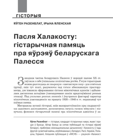 Разенблат, Яўген; Яленская, Ірына. Пасля Халакосту: гістарычная памяць пра яўрэяў беларускага Палесся // № 4 (121) — 2013. С. 230—240. Бібліягр. у падрадк. заўвагах.