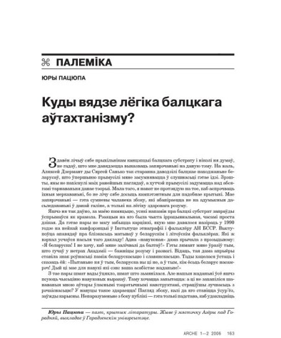 Аўтар(ы): Пацюпа ЮрыПацюпа, Юры. Куды вядзе лёгіка балцкага аўтахтанізму? // 1—2 (41—42) — 2006. С. 163—168.